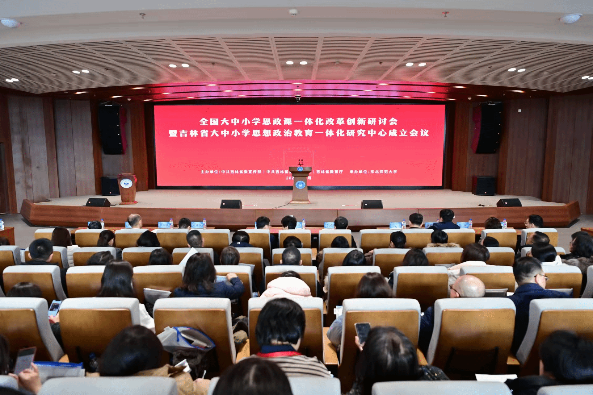 12月12日,为深入学习贯彻习近平总书记关于学校思政课建设的重要指示精神,全面落实党的二十届三中全会、全国教育大会和新时代学校思政课建设推进会精神,进一步推进大中小学思想政治教育一体化建设,由中共吉林省委宣传部、省委教育工委、省教育厅主办,我校承办的全国大中小学思政课一体化改革创新研讨会暨吉林省大中小学思想政治教育一体化研究中心(以下简称“研究中心”)成立大会在我校召开。
